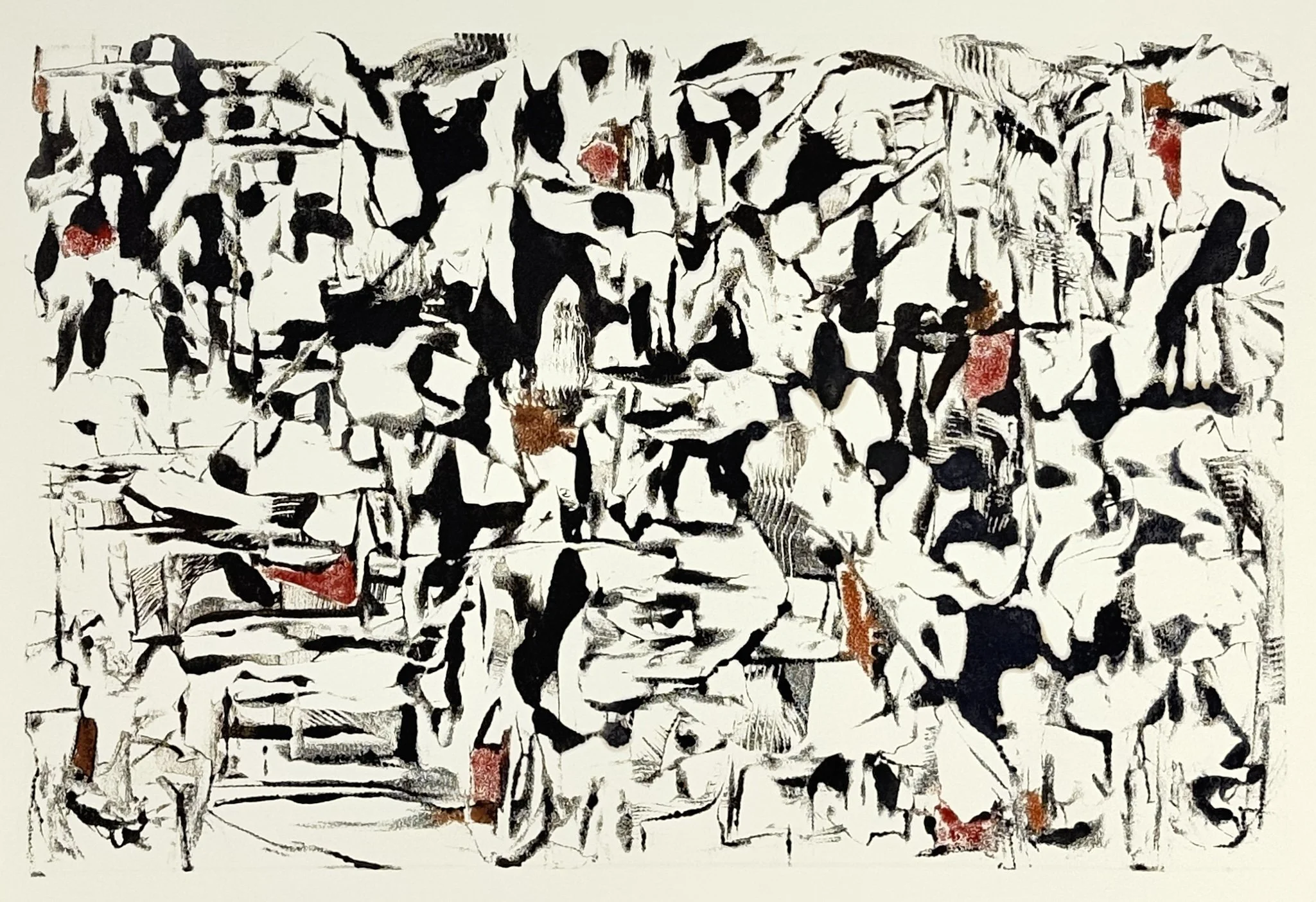 Nature deeply informs my compositions — not as landscape depiction, but as remembered sensation. The droop of branches, the rhythm of lily pads on water, the eroding edge of land, the ripple left by geese crossing an aquatic surface. These observations translate into marks that hold both direction and openness.